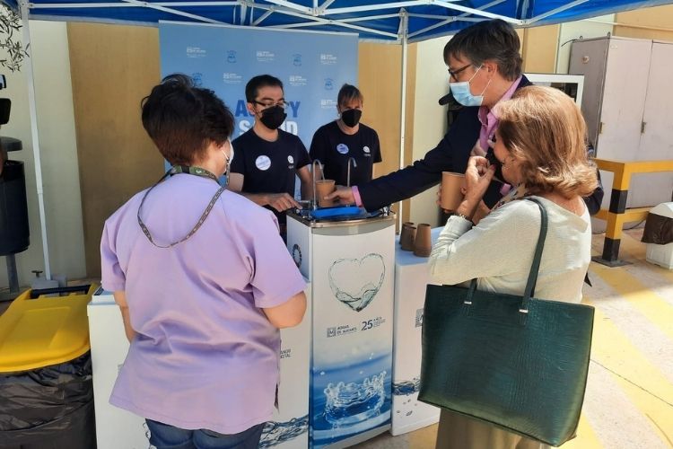 Aguas de Alicante y APSA instalan quioscos para dispensar agua del grifo en el vacunódromo de Ciudad de la Luz