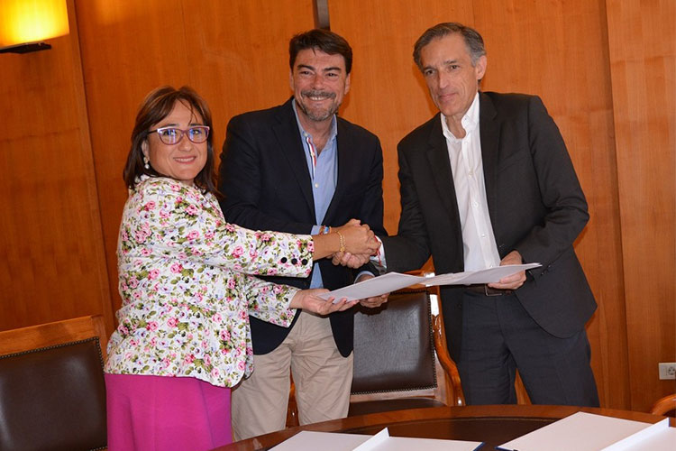 L’alcalde d’Alacant, Luis Barcala, ha firmat un conveni de col·laboració amb el director general d’Aguas de Alicante, Francisco Javier Bartual, per a la gestió compartida del fons social de la tarifa d’aigua i clavegueram, destinat als col·lectius vulnerables de la ciutat i que té un pressupost de mig milió d’euros. A l’acte hi ha assistit la regidora d’Acció Social, María Ángeles Goitia.