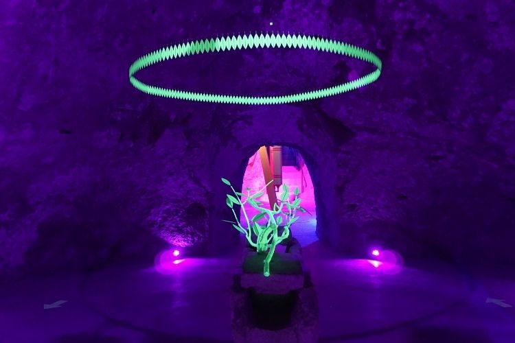 La antigüedad y especial morfología de este espacio, excavado bajo la montaña y compuesto por tres bóvedas, han inspirado a Ayela para la creación de una exposición en torno al término “hipogeo”, literalmente, “bajo tierra”. Interpretados por el artista como un espacio simbólico, “por la emanación sensorial del lugar en que se ubican”, y desde la inmersión física en el seno de la montaña que supone la visita a los aljibes, se invita al visitante a explorar la construcción del relato interior de nuestro lugar en el mundo.