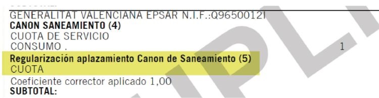 Estos importes, en cuotas iguales, serán los que se incluirán en tus próximas facturas (6 si es trimestral, 18 si es mensual) con el concepto de “Regularización Canon de Saneamiento”.