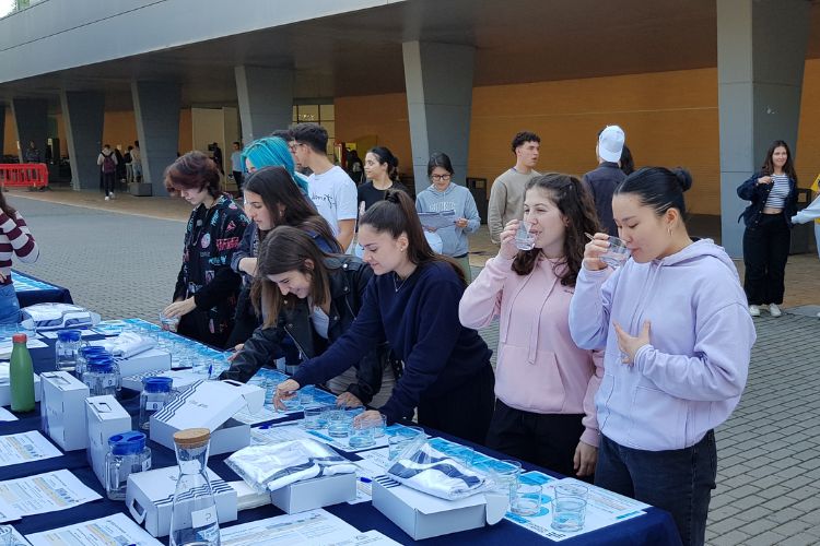 Más de ciento cincuenta alumnos y un objetivo: poner en valor entre los más jóvenes el consumo de agua del grifo como hábito saludable y sostenible; sus beneficios tanto para la salud, como para el medioambiente. Para lograrlo, Aguas de Alicante ha organizado hoy una cata de agua “a ciegas” y simultánea en el corazón de la Universidad de Alicante, la más multitudinaria de las organizadas por la compañía hasta ahora y en colaboración con el vicerrectorado de Estudiantes y Empleabilidad y el Secretariado de Universidad Saludable, dependiente del vicerrectorado de Infraestructuras, Sostenibilidad y Seguridad Laboral de esta universidad. La iniciativa forma parte de la conmemoración del Día Mundial del Agua (DMA), que en este 2023 se ha desarrollado bajo el lema "La importancia del agua", premisa para recordar la relevancia del agua dulce a la que todavía cerca de 2.200 millones de personas no pueden acceder.
