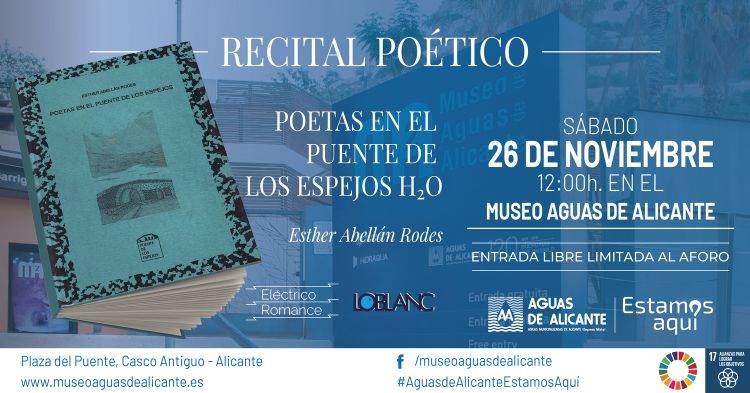 El trabajo desarrollado para el diseño de este recital en el Museo de Aguas de Alicante parte del trabajo literario realizado por Esther Abellán con la obra “Poetas en el Puente de los Espejos”, de la editorial alicantina Eléctrico Romance. Esta antología, formada por obras de sesenta y siete autores, se presentará ese mismo día 26 de noviembre durante la celebración del evento; es la reunión de la obra de un amplio espectro de poetas en activo que escriben en castellano y que tienen una especial vinculación con la provincia de Alicante.