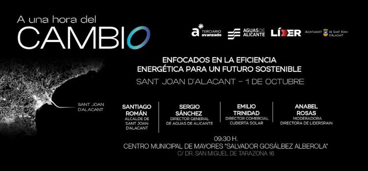 Este quinto encuentro tendrá lugar el próximo martes, día 1 de octubre, en el Centro Municipal de Mayores ‘Salvador Gosálbez Alberola’ de Sant Joan d’Alacant (C/ Dr. San Miguel de Tarazona 16), a partir de las 9:30 horas. En esta ocasión los intervinientes serán: Santiago Román, alcalde de Sant Joan, Sergio Sánchez, director general de Aguas de Alicante y Emilio Trinidad, Director Comercial de Cubierta Solar, actuando de moderadora Anabel Rosas, directora de LÍDER, medio de comunicación colaborador del proyecto.
